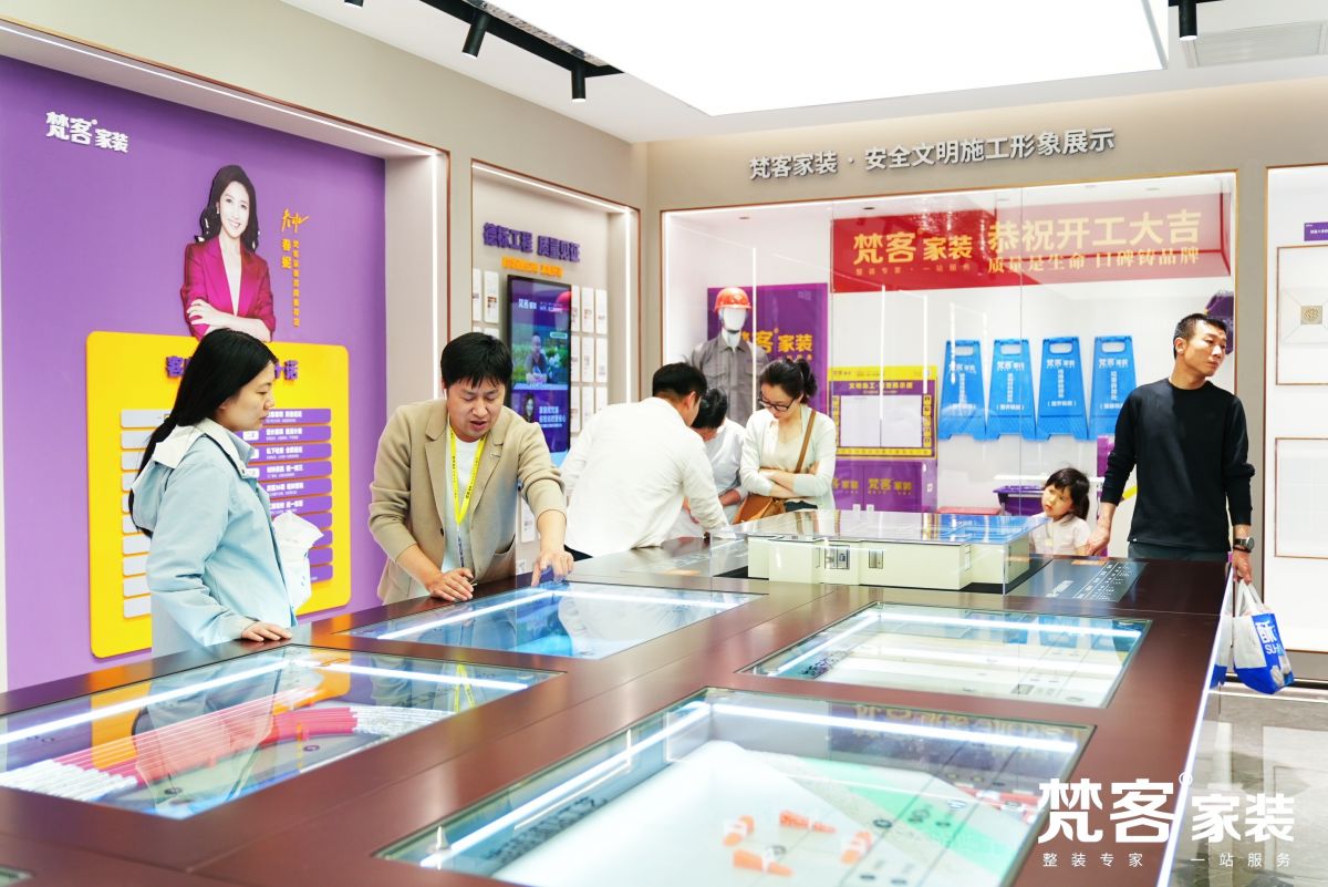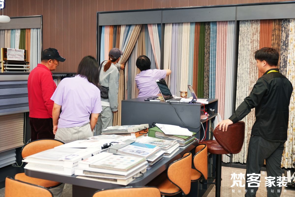 在梵客家裝的洽談區(qū),設(shè)計師正在和業(yè)主溝通方案,以便為業(yè)主提供更適合的設(shè)計方案,以及更系統(tǒng)化、精細化的全案服務(wù),量身定制最舒適的居住空間。