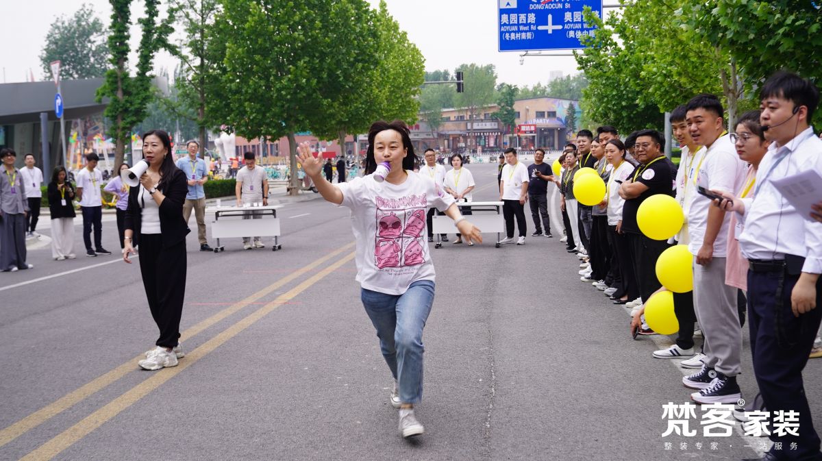拓展結束后,梵客集團副總裁/梵客家裝總經理任琳女士宣布營銷大會正式開始。梵客家裝成立18周年,奧體中心店也馬上進入第二個年頭,這期間經歷過風雨,但最終靠大家的拼搏與堅持贏得了希望。4月,奧體中心店業績翻番,知名度越來越廣,5月更要以飽滿的熱情取得突破性成績、再創輝煌。