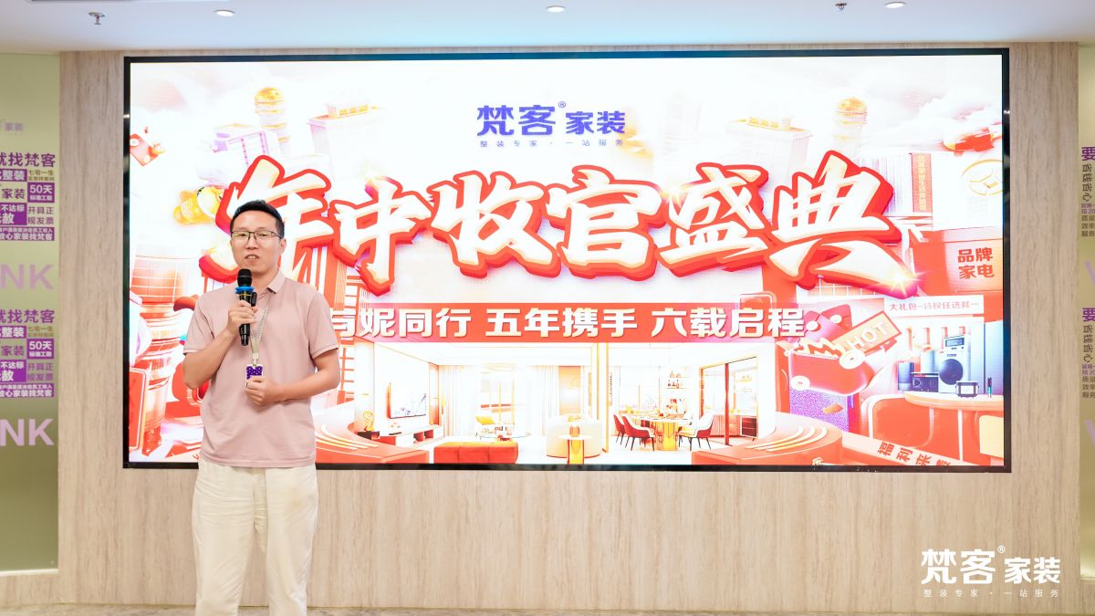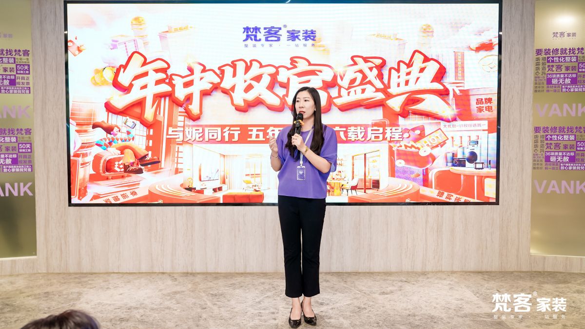 梵客家裝成立十八年,在品牌、產品、材料、工程、售后等方面努力做到精益求精,踐行京城頭部裝企的責任與義務。服務不遺余力,在給消費者的優(yōu)惠福利也給予了最大的誠意。梵客集團副總裁/梵客家裝總經理任琳女士宣讀了本次活動的優(yōu)惠政策,將梵客家裝的好產品、好服務、年中超值返場重磅鉅惠等第一時間給到大家,希望業(yè)主朋友能在梵客收獲滿意的裝修。