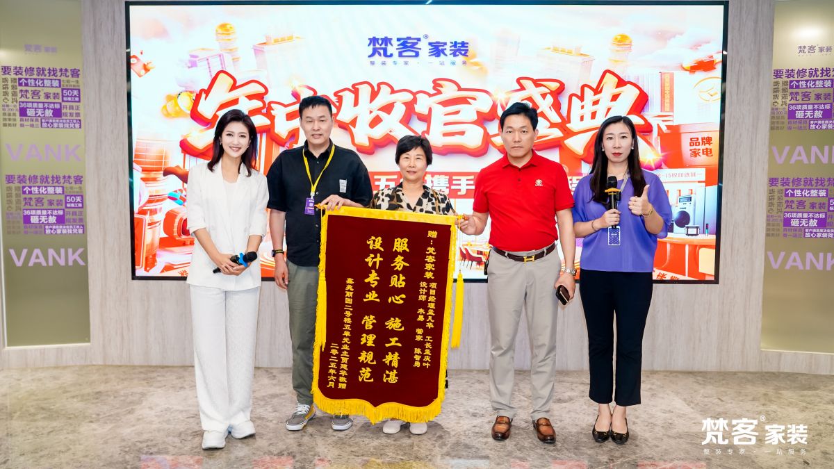 已經裝修完的業(yè)主也專程來送錦旗,表達了對梵客家裝的感謝,紅底金字熠熠生輝,其肺腑之言更堅定了梵客做好產品、做好服務的決心與信心。