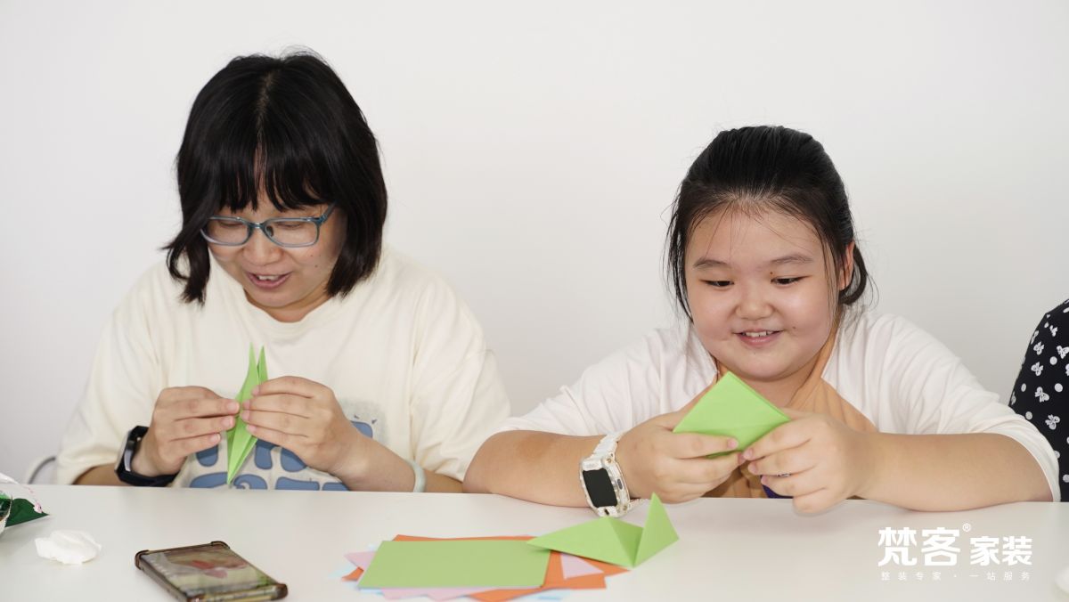 千紙鶴象征勇氣、好運和健康,家長和孩子一起折千紙鶴,將最真摯的祝福送給彼此。此刻的畫面溫情而美好,一只只千紙鶴的誕生,象征著一段段幸福生活的開啟,它承載著彼此之間的祝愿,你要快樂長大,你要永遠健康!