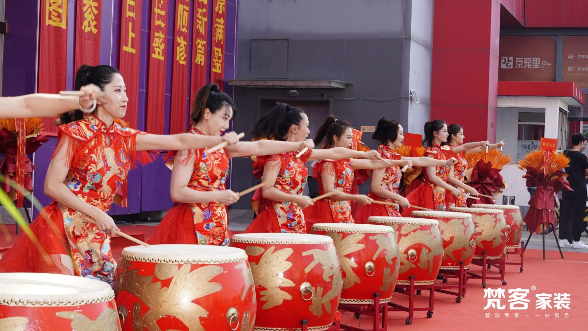 伴隨著開(kāi)場(chǎng)鼓舞表演,開(kāi)業(yè)儀式拉開(kāi)帷幕。身著紅衣的鼓手一邊舞動(dòng)一邊擊鼓。鼓點(diǎn)韻律振奮人心,每一次敲擊,都彰顯出梵客新店開(kāi)張的豪邁與氣魄。