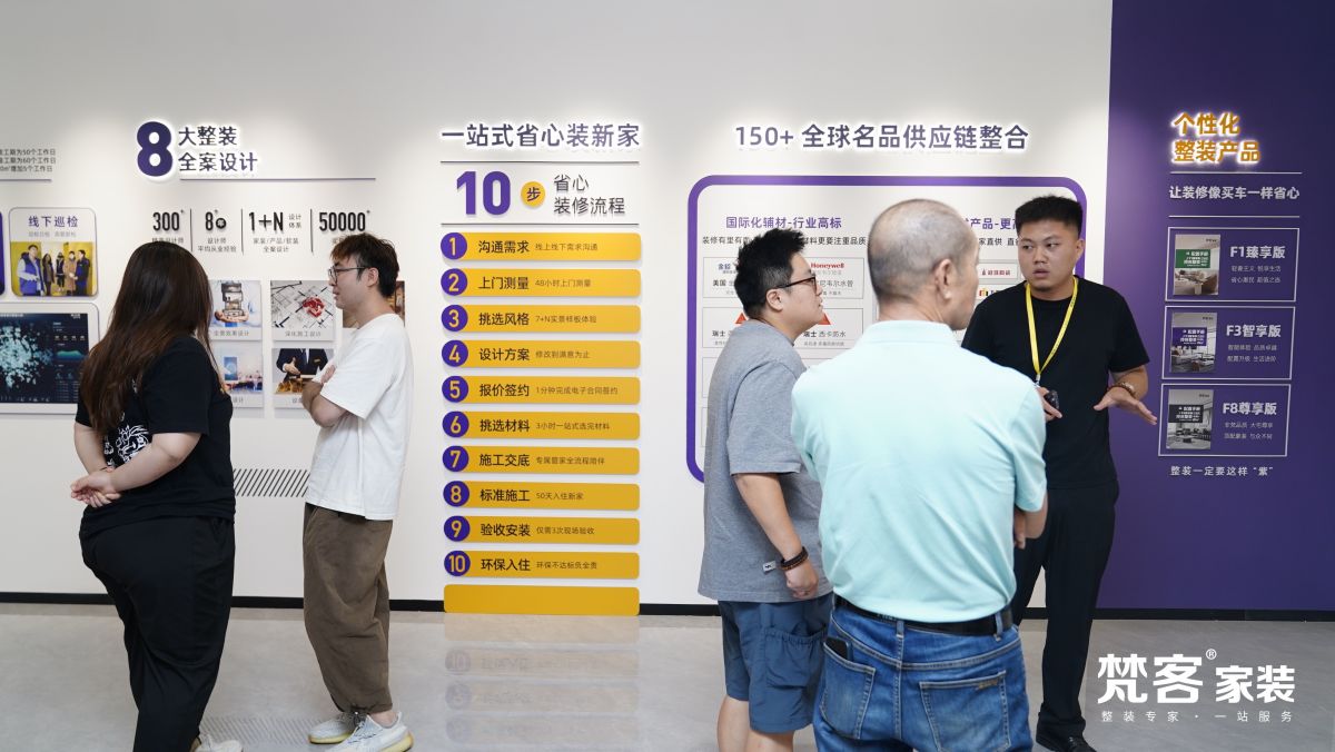 城外誠(chéng)店采用更新穎的展館設(shè)計(jì)理念,共三層,設(shè)有品牌館、工藝工法區(qū)、七宅一生實(shí)景樣板間、選材區(qū)、軟裝家具展區(qū)、洽談區(qū)等場(chǎng)景,戰(zhàn)略合作150余家建材品牌,為用戶(hù)提供更豐富的選擇,不用東奔西跑,就可實(shí)現(xiàn)一站式整裝解決方案。輕松舒適的環(huán)境、整齊劃一的動(dòng)線、琳瑯滿目的產(chǎn)品、匠心獨(dú)具的工藝…讓逛家裝展廳成為一種享受,也讓來(lái)梵客的業(yè)主朋友體會(huì)到賓至如歸的感覺(jué)。