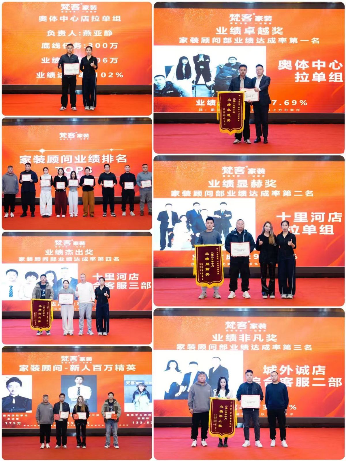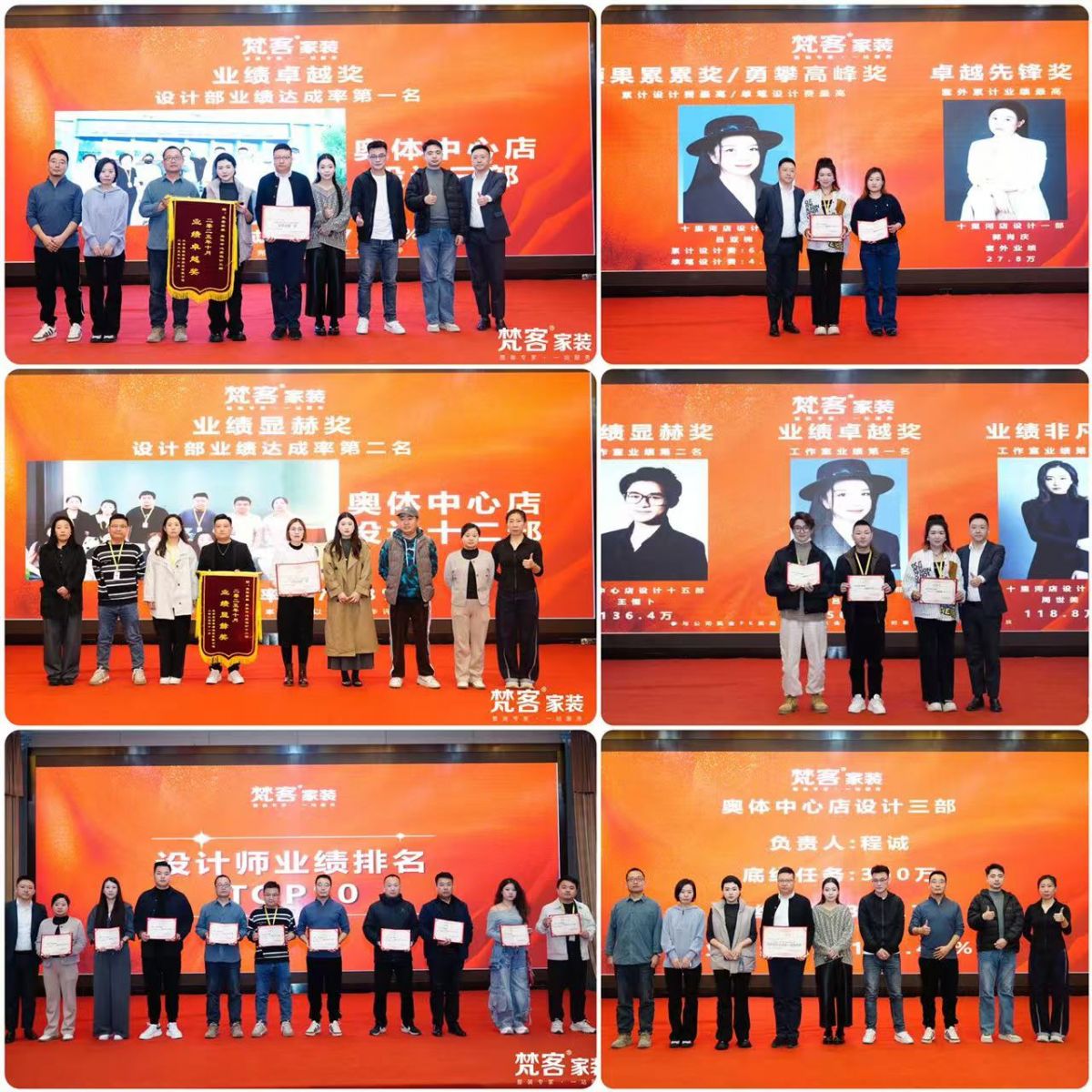 公司的發(fā)展壯大離不開員工的努力,此次大會對10月取得優(yōu)異成績的梵客精英進(jìn)行了表彰,并頒發(fā)獎狀與錦旗,其中包括設(shè)計部、家裝顧問部、設(shè)計師、家裝顧問等團(tuán)隊獎、個人獎等。
