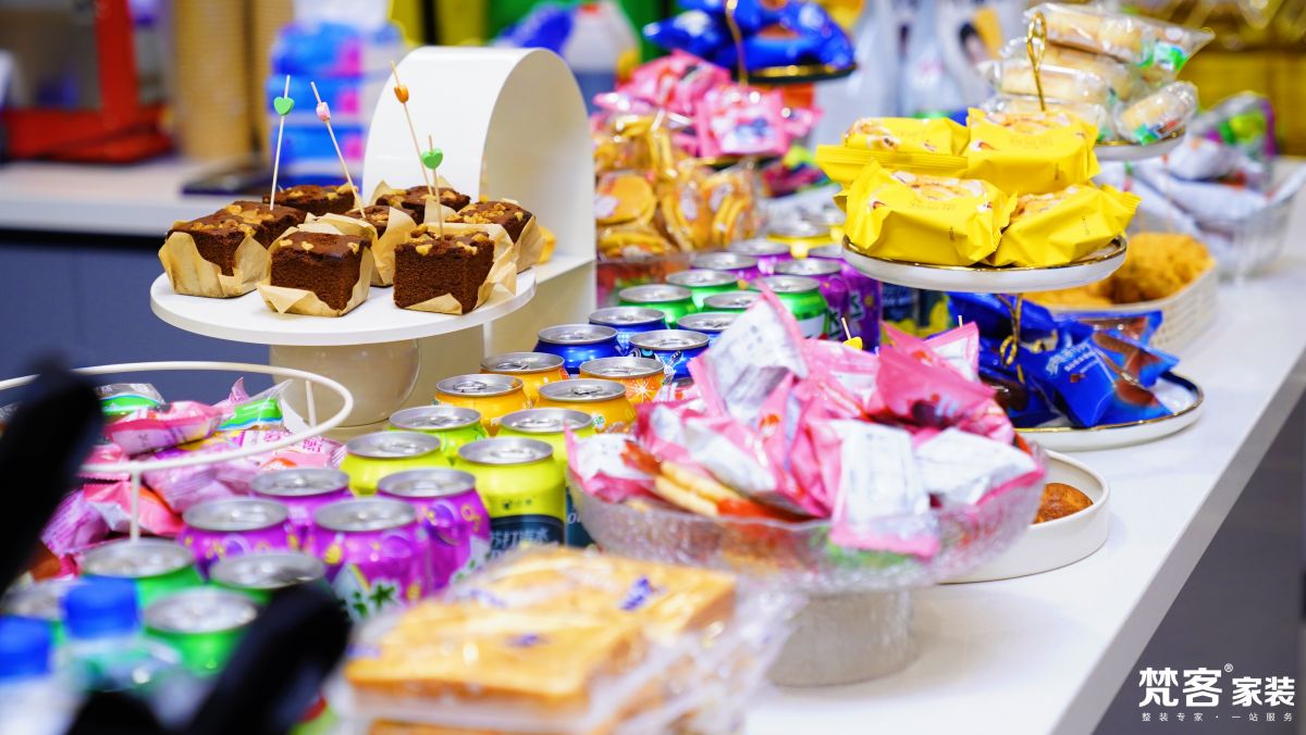 活動在梵客家裝城外誠店大廳舉行,這里經重新布置后節日氛圍瞬間拉滿。悠揚的音樂在耳邊蕩漾、食材的香味撲面而來…客戶朋友陸續到訪,大廳也呈現出熱鬧而歡快的場景。此次相聚既有梵客對大家的感恩與答謝,也為辭舊迎新許下祝愿。