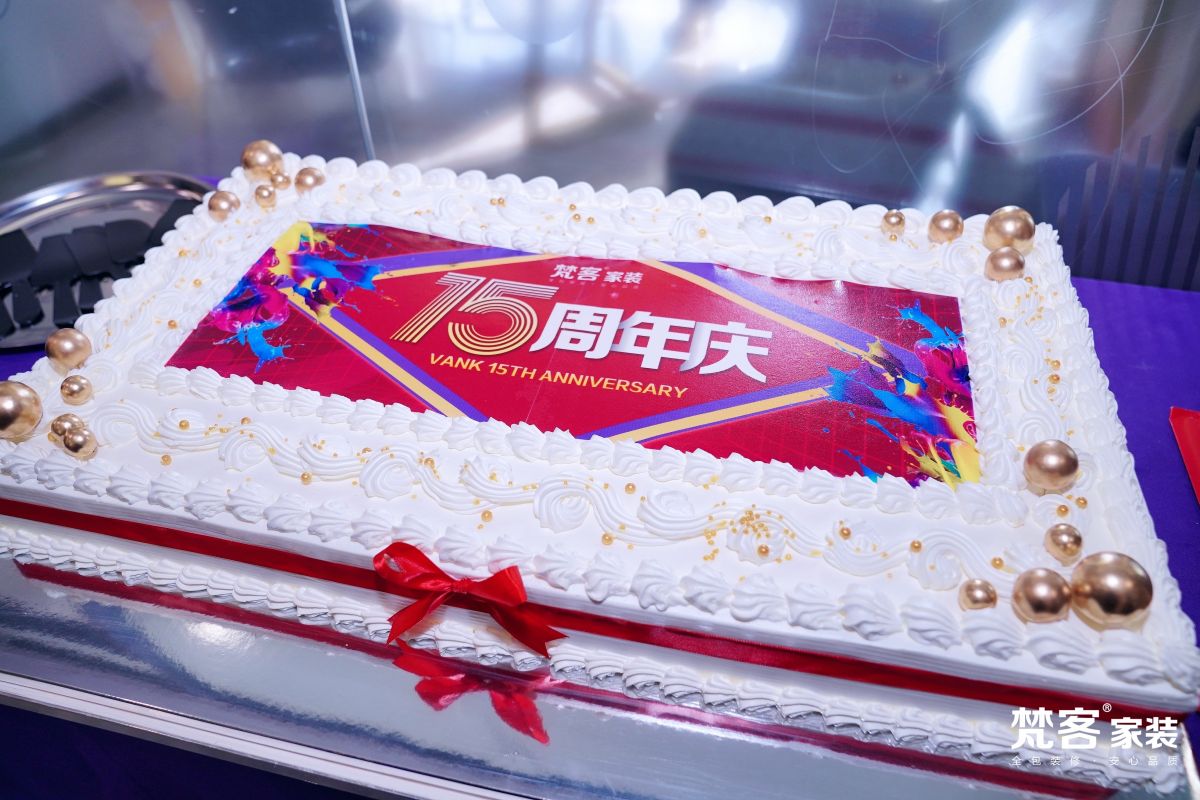 終于,迎來了最激動人心的時刻,隨著音樂的響起,定制的寫有梵客家裝15周年慶字樣的巨型蛋糕被緩緩?fù)粕衔枧_,這一刻,祝福已無法表達所有思緒,留給大家更多的是感動,以及對未來滿腔熱情的期許。所有人一起唱響生日的祝福歌,許下宏偉的心愿,共同開啟象征著梵客15周年的美味蛋糕,分享15周年的快樂與甜蜜。