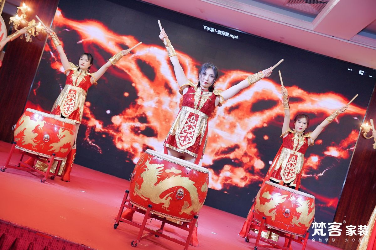 伴隨著激昂的戰鼓聲,星兔啟航,梵華似錦,2023梵客家裝營銷大會&2022頒獎盛典拉開帷幕,鏗鏘有力的龍騰鼓,激發了勇往直前的力量,梵客家裝全體員工攜手唱響2023年戰歌。