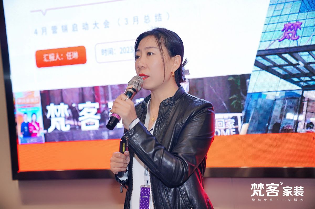梵客集團副總裁、梵客家裝總經理任琳女士應邀出席大會,并進行精彩發言。分析3月業績產值、回顧3月大事件、總結3月營銷活動及直播影響力,同時也提出4月的目標任務及獎勵機制,對4月活動規劃、工作重點等進行深入解析。