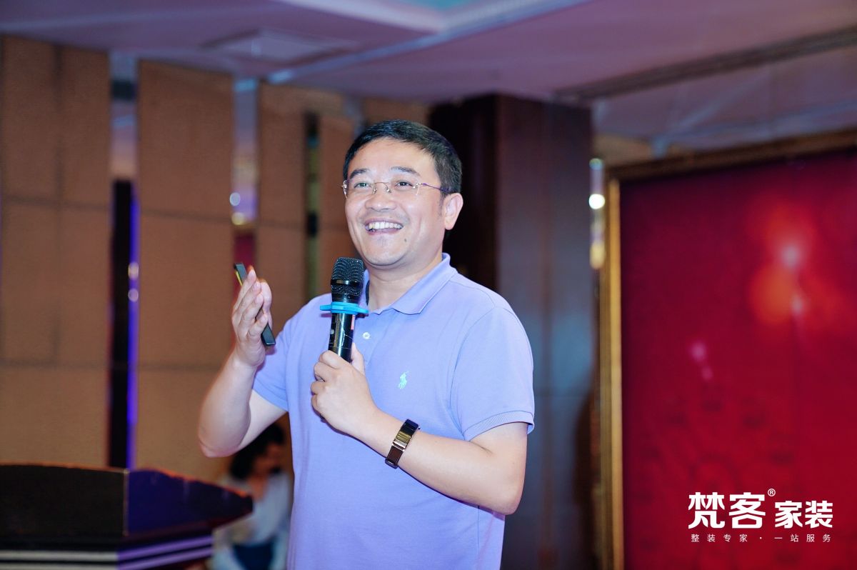 當梵客集團董事長李靜先生走上舞臺的那一刻,全場響起熱烈的掌聲。作為梵客家裝的領軍人、指路明燈,李總一直帶領大家全力以赴在梵客的家裝事業和集團建設上。此次大會,李總還落實了5月核心工作,推出全新智尊產品、完善交底標準、啟動新的改造項目等。