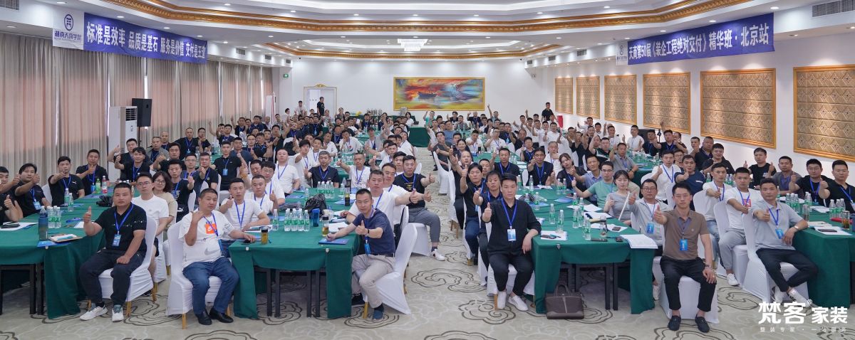 2023年6月28日-29日,為期兩天的湖南天商第50屆“裝企工程絕對交付精華班”培訓在京舉行,參加培訓的有梵客家裝近百名工程部、管家部、交付中心人員,以及部分中高層領導。