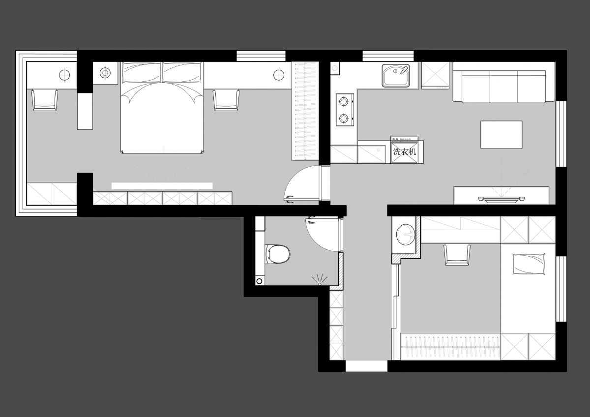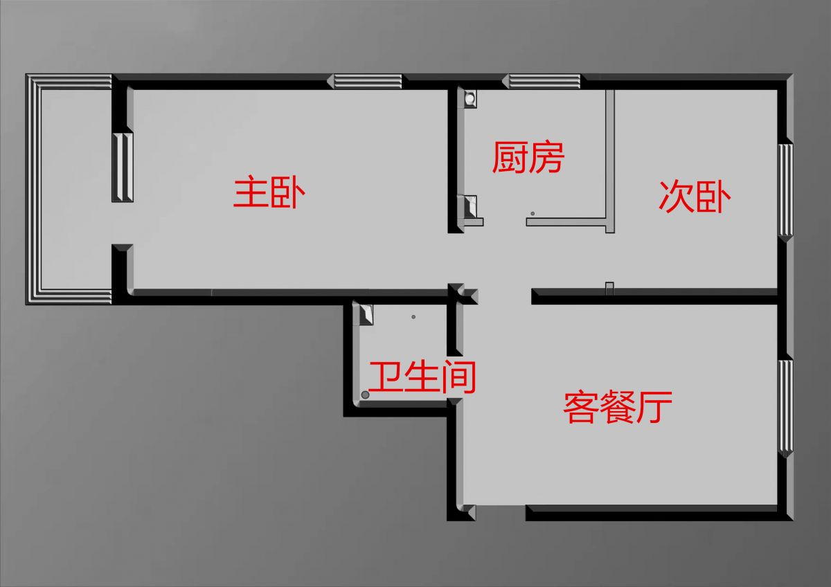 這是一套2室1廳1廚1衛(wèi)的老房,年輕小兩口準(zhǔn)備裝修做婚房,男主是IT精英,女主是教師。他們希望自己的新家能繼續(xù)保持兩居室,有客餐廳,洗手間干濕分離,此外還要有充足的收納空間。