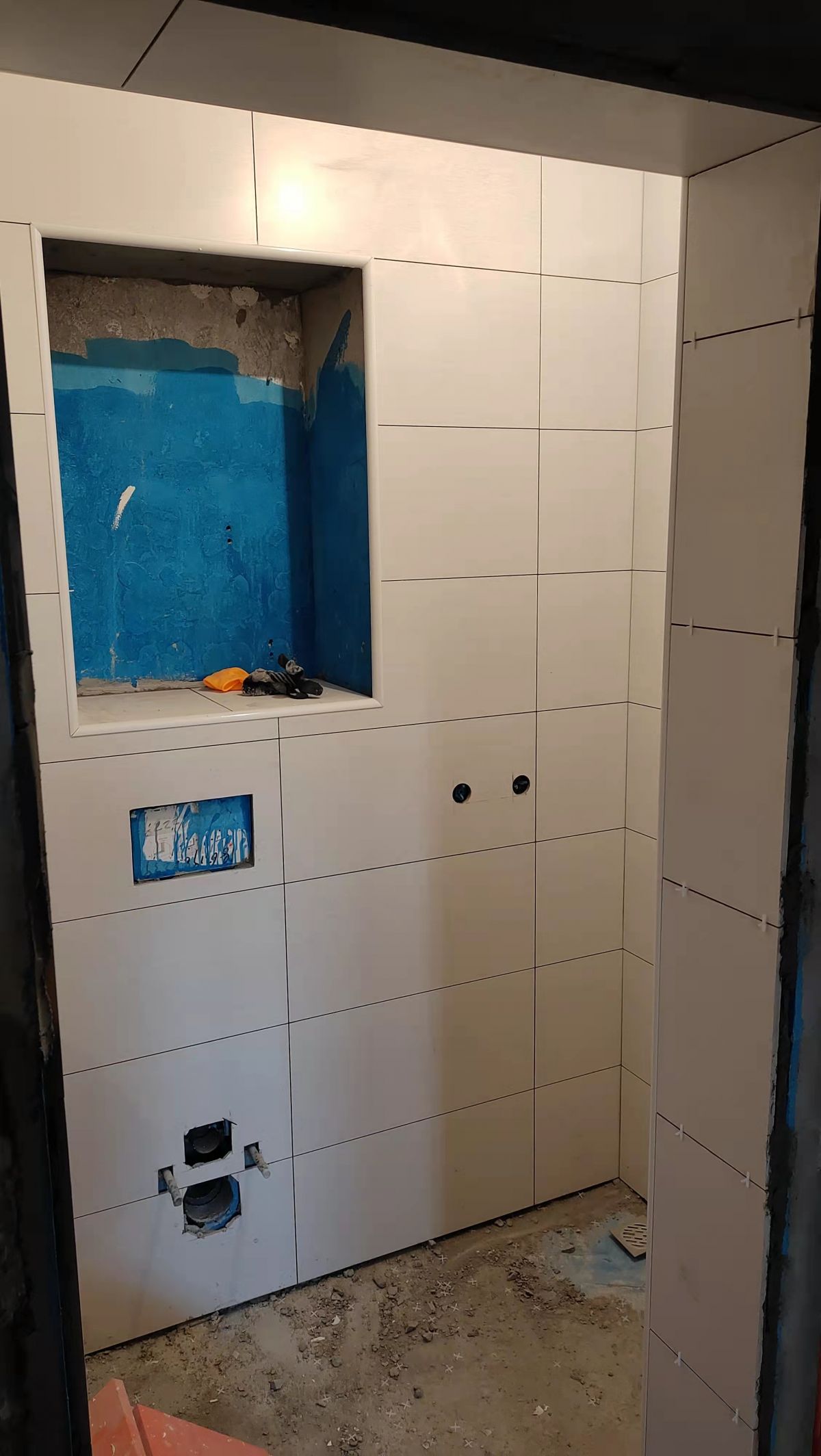 檢查施工進(jìn)度階段可以看出:廚房的墻面瓷磚鋪貼平整,幾乎“無縫銜接”,輕敲瓷磚表面,聲音沉悶,無空鼓磚。
