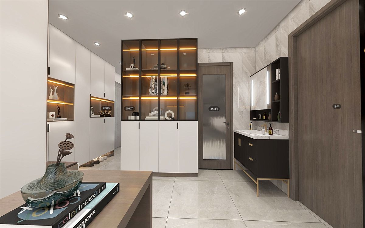門廳是門面,不僅要好看,還要實用性強。小戶型更要考慮收納。門廳兩側的空位分別倚墻定制了兩組收納柜,增加儲物功能。